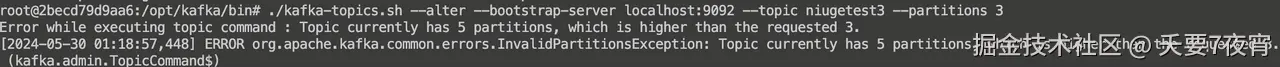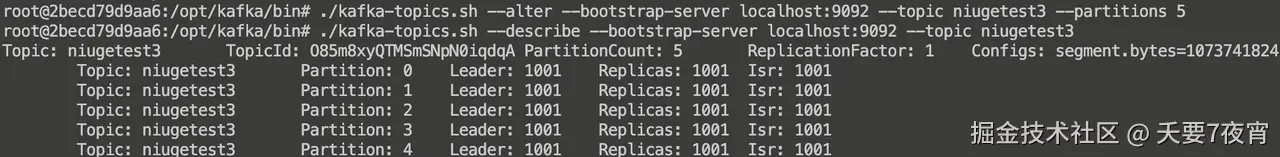 ./kafka-topics.sh --alter --bootstrap-server localhost:9092 --topic niugetest3 --partitions 5