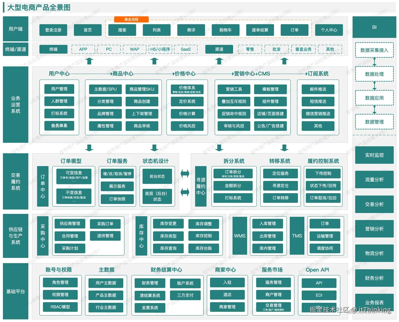 - 渠道层:进入系统的入口,可以是一个终端,比如APP, PC, WAP, 小程序。也可以是终端中的某个模块。