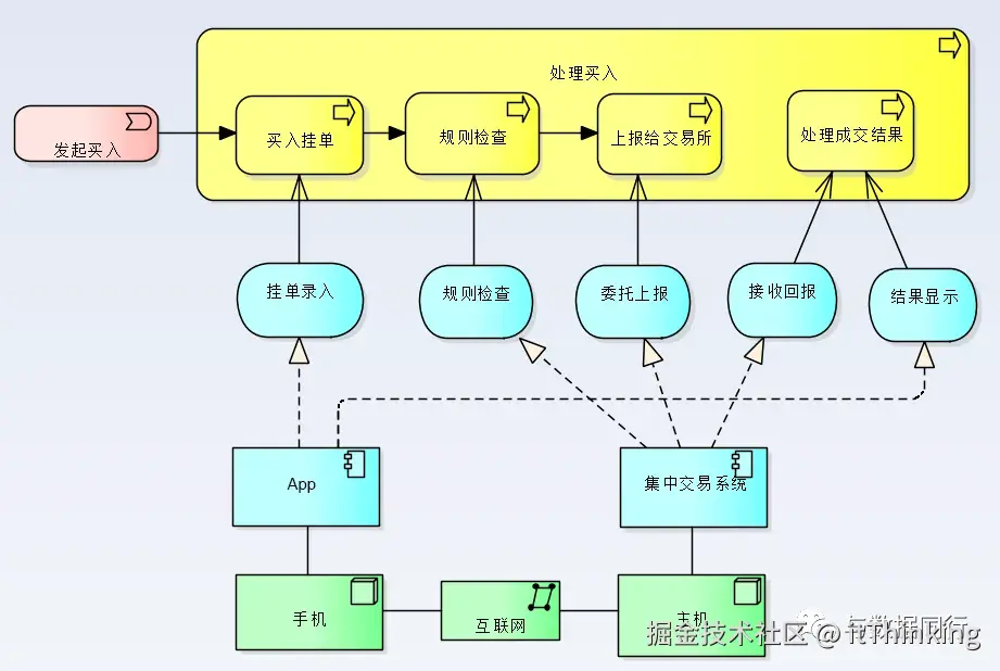 以买入股票为例。业务架构如下: