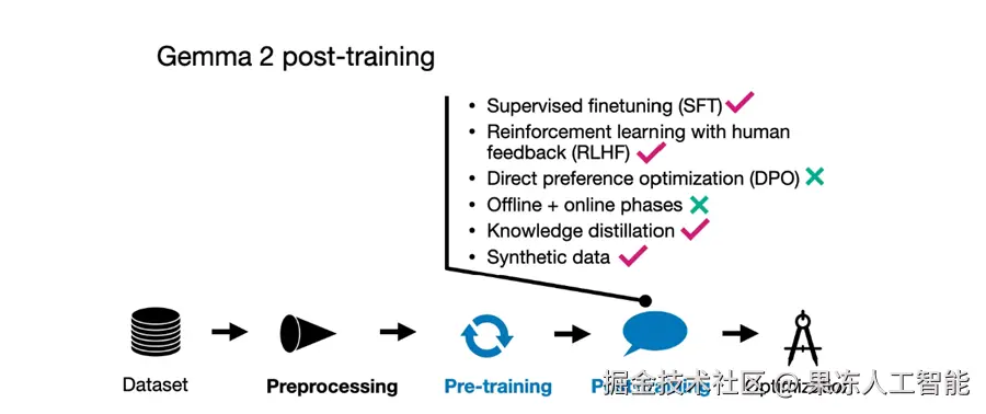 在本文中,我将重点介绍以下模型中的谷歌的 Gemma 2语言模型 预训练和后训练流程: