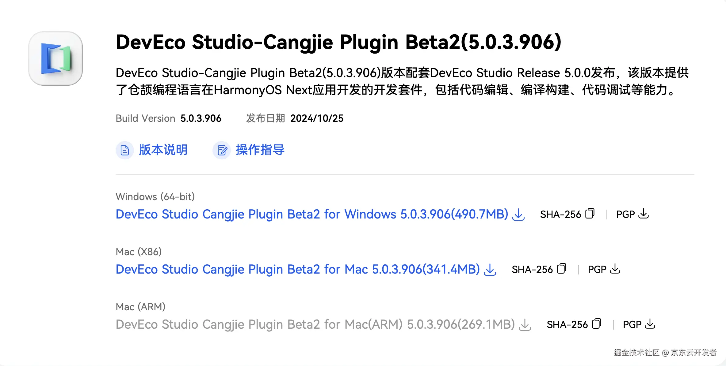 在鸿蒙开发者网站找到下载中心,可以看到DevEco仓颉插件,下载到本地。