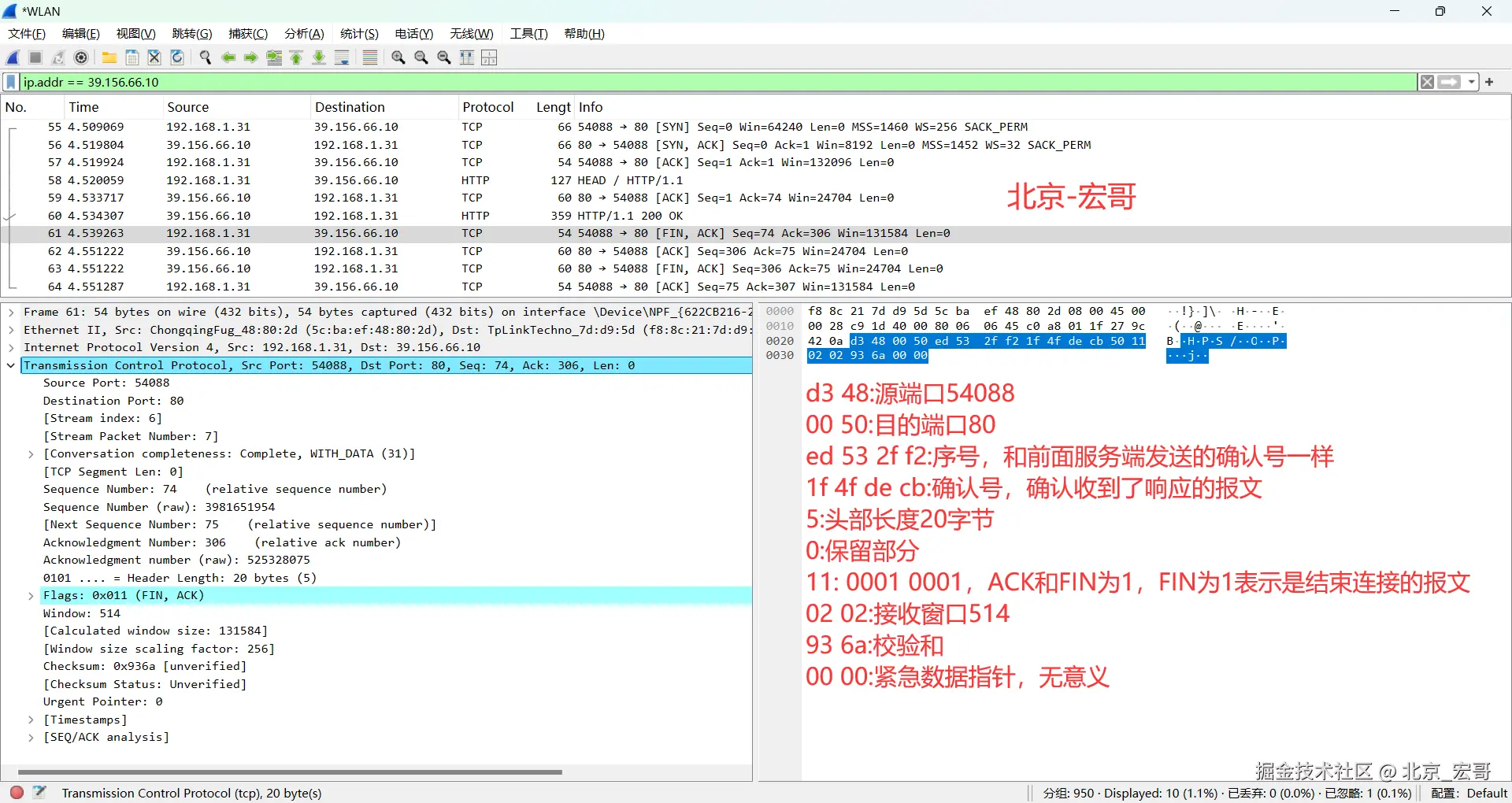 前边理论加后边的实践,想必小伙伴或者童鞋们对TCP包有了进一步的认识了吧,宏哥觉得说清楚了,如果有想了解更清楚地,可以查一些资料。好了,今天时间也不早了,就到这里!感谢您耐心的阅读~~