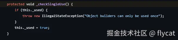- 建造者的build()方法只能被调用一次(如下方法 继承自ObjectBuilderBase)