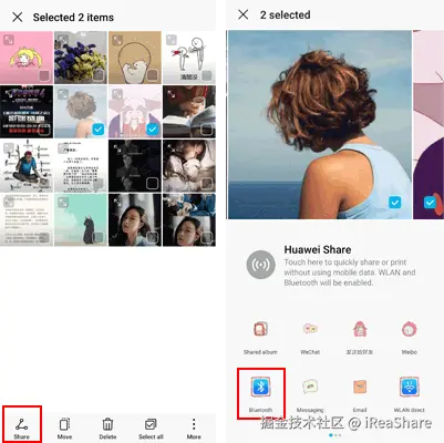 - 选择来自 OPPO 的内容,然后点击“分享”> 选择“蓝牙”。