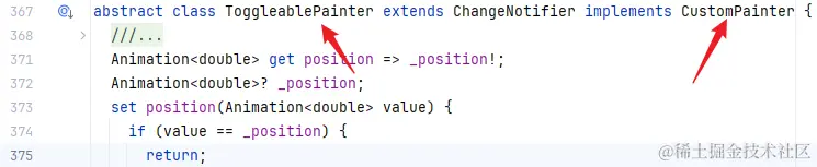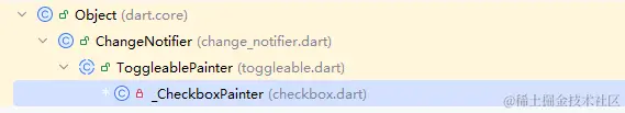另外,ToggleablePainter 实现了 CustomPainter ,说明 _CheckboxPainter 是一个自定义画板,必然有其绘制的逻辑。