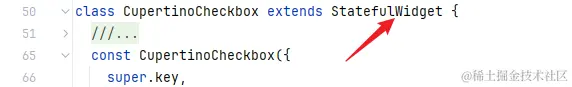 总得来说 CupertinoCheckbox 用法还是非常简单的,下面来瞄一眼它的源码实现。它是一个 StatefulWidget ,首先要想它维护状态的必要性:
