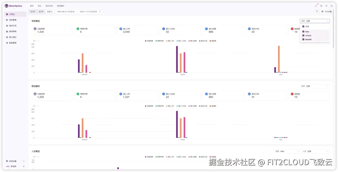 在这一版本中,MeterSphere新增工作台模块,工作台可以统一汇总系统数据,提升测试数据的可视化程度并增强对数据的分析能力,为管理者提供测试工作的全局视野,旨在更科学地进行测试管理;系统设置方面,任务中心提供一键重跑功能,降低人工干预和系统维护成本,提高任务执行的可靠性。