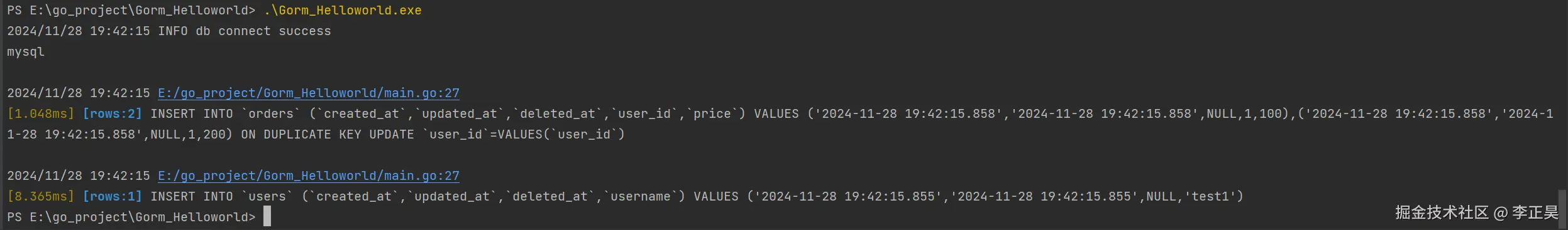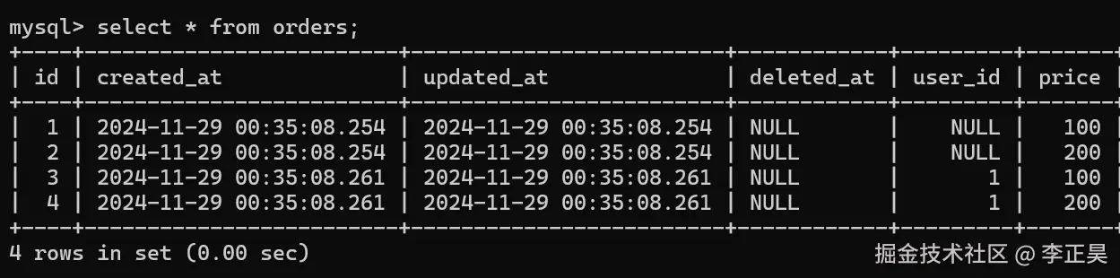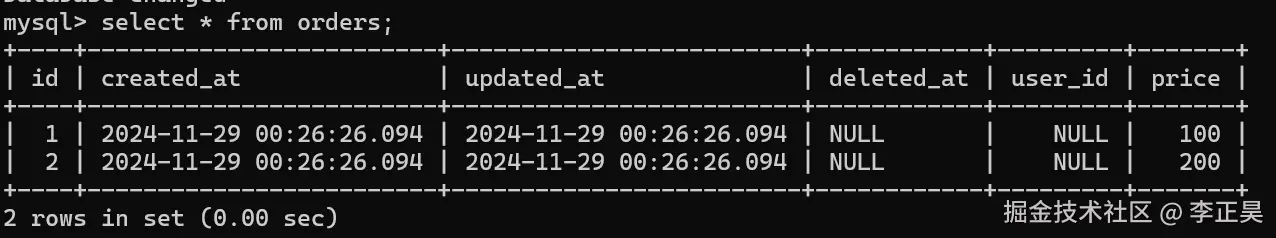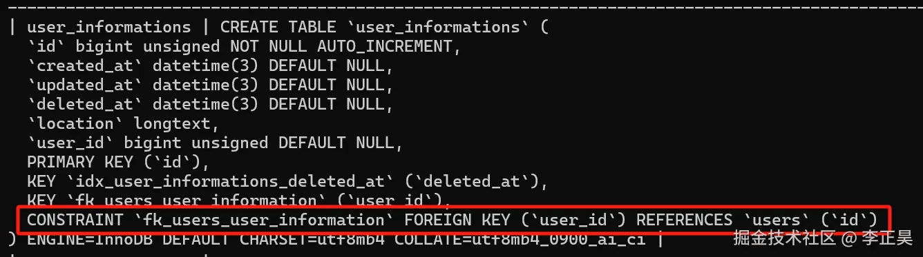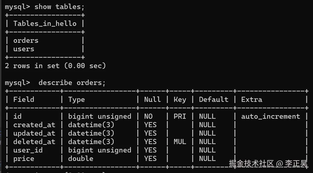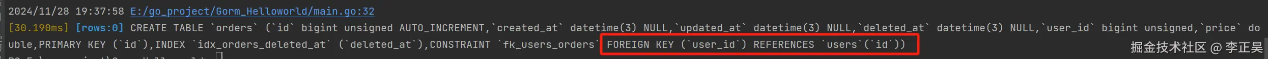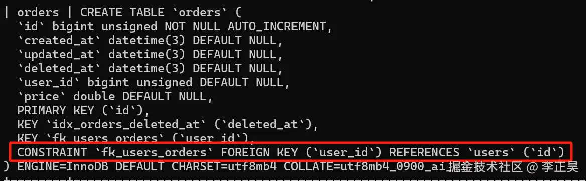 可以看到在没有任何关于外键的注释的条件下,gorm自动识别出了这是一个一对多的关系,并在orders表中构造了外键约束。