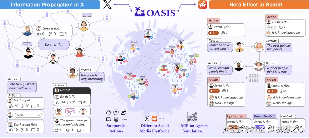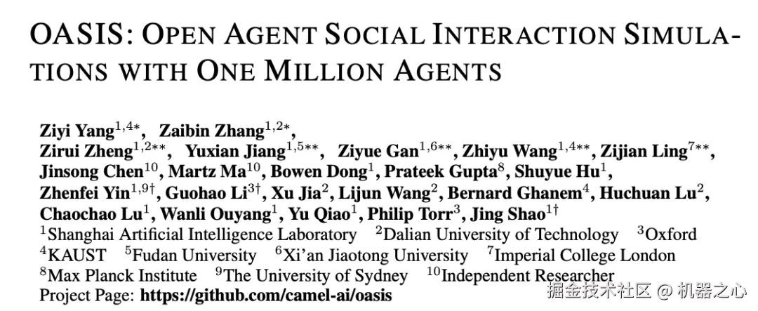 最近,上海 AI Lab、CAMEL-AI.org、大连理工大学、牛津大学、马普所等国内外多家机构联合发布了一个名为 OASIS 的百万级智能体交互开源项目。