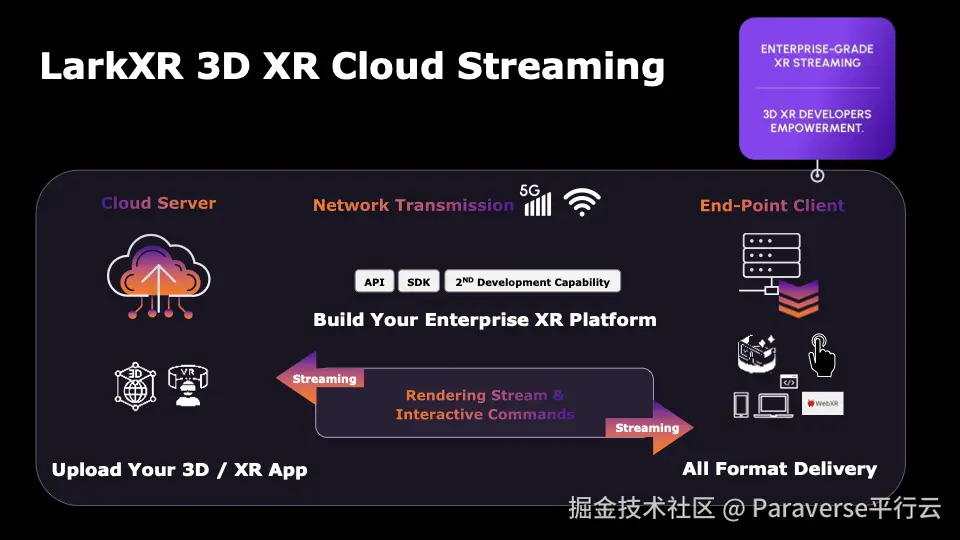 LarkXR凭借创新的链接分发技术,使3D/XR应用获革命性转变。随着5G普及与设备性能提升,其分发能力对XR未来作用将更关键。实时云渲染技术提供更逼真沉浸体验、自然直观交互、协作场景扩展及AR与VR深度融合等。LarkXR不只是企业级云渲染平台产品,更是XR未来缩影,Paraverse平行云团队通过创新优化,为行业数字化转型添动力,开启互联、沉浸、智能世界,为3D/XR应用规模化应用带来无限潜力。
