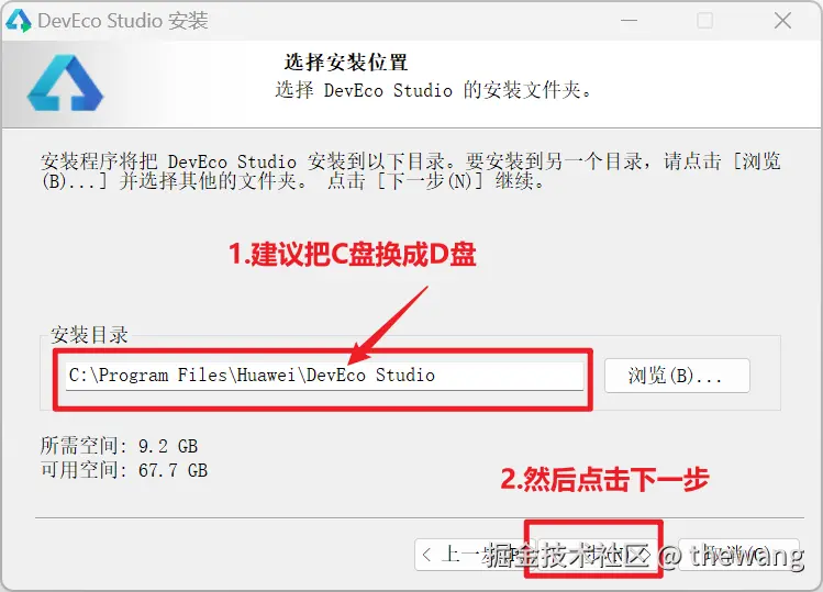建议安装位置和之前安装在和DevEco Studio的同一个目录下