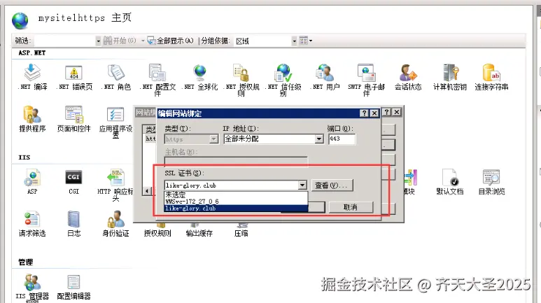 iis读取不到本地证书问题 提示已经导入成功 齐天大圣2025 2024-11-29 64 阅读1分钟 开始在通过在命令行certmgr.msc打开证书管理 和在浏览器设置里面打开,在添加申请好的证书,提示导入成功。 结果iis选择证书时刚刚导入的证书读取不到,是导入方式不对导致的权限问题。 正确的导入方式: 1.服务器证书 2.导入 3.可以了。
