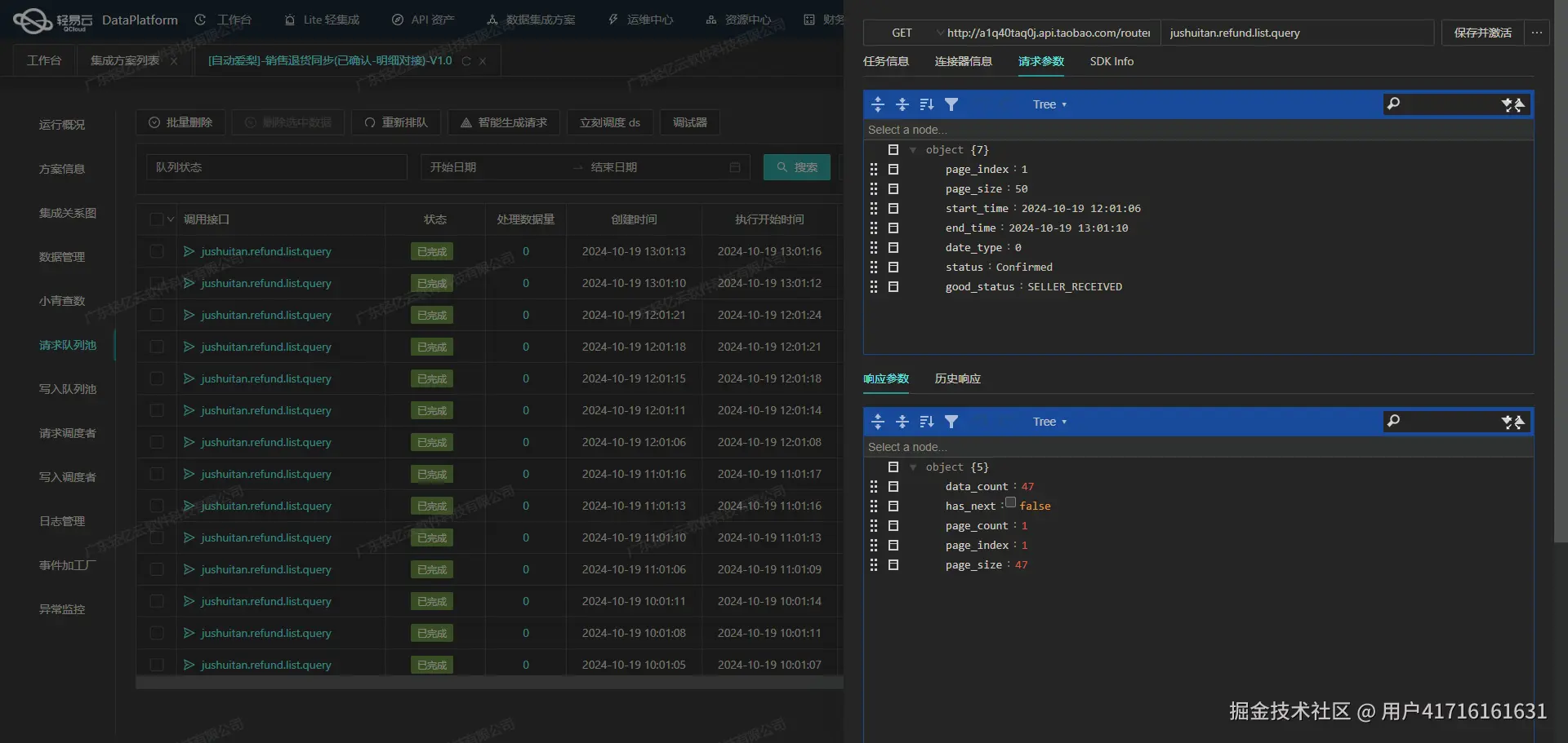 - 批量集成与分页处理:面对大量CU不良品其他出库单数据,我们设计了批量集成策略,同时针对易仓API接口getDeliveryDetailList进行分页处理,有效避免了接口限流问题,提高了整体效率。