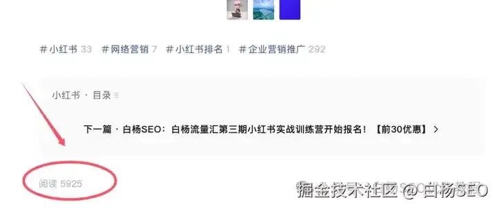后面写了那篇《白杨SEO:再谈小红书SEO,小红书笔记排名因素解析及实战举例【收藏】》,已经有近6000人看过了,如图: