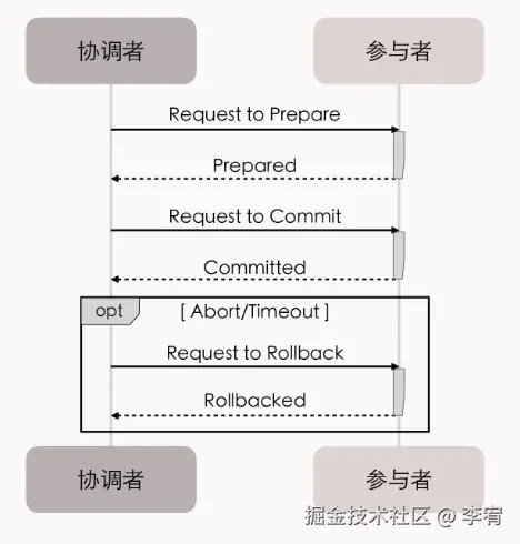 - **定义:**1991年X/Open组织提出的事务处理框架,定义了全局事务管理器(Transaction Manager)和局部资源管理器(Resource Manager)之间的通信接口。