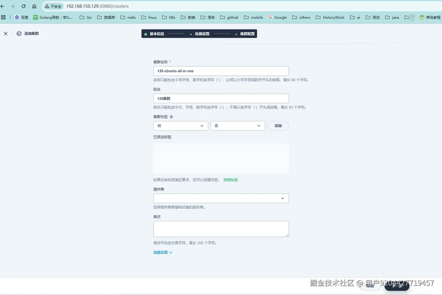点击下一步后,集群配置不填写,直接点击创建。