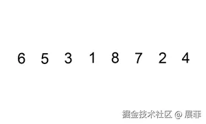 下面是插入排序算法的一个图形示例。部分排序的列表(黑色)最初只包含列表中的第一个元素。每次迭代时,从输入数据中删除一个元素(红色),并就地插入已排序的列表中。