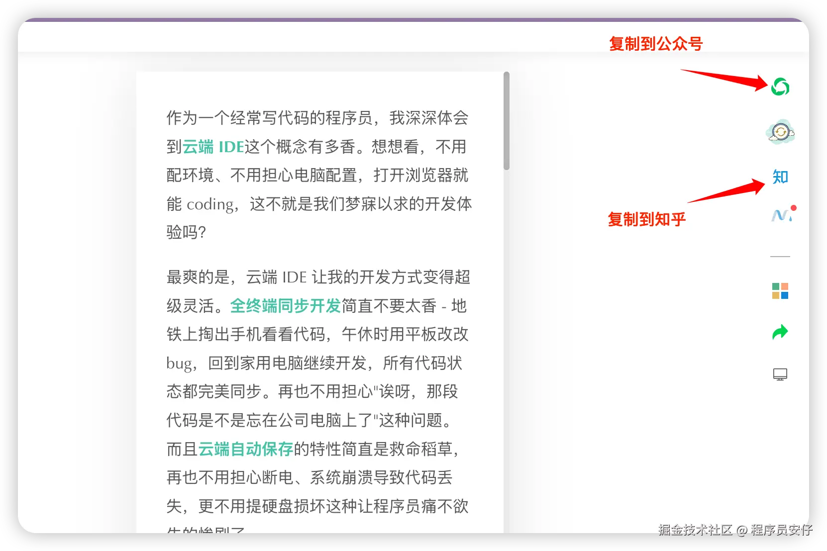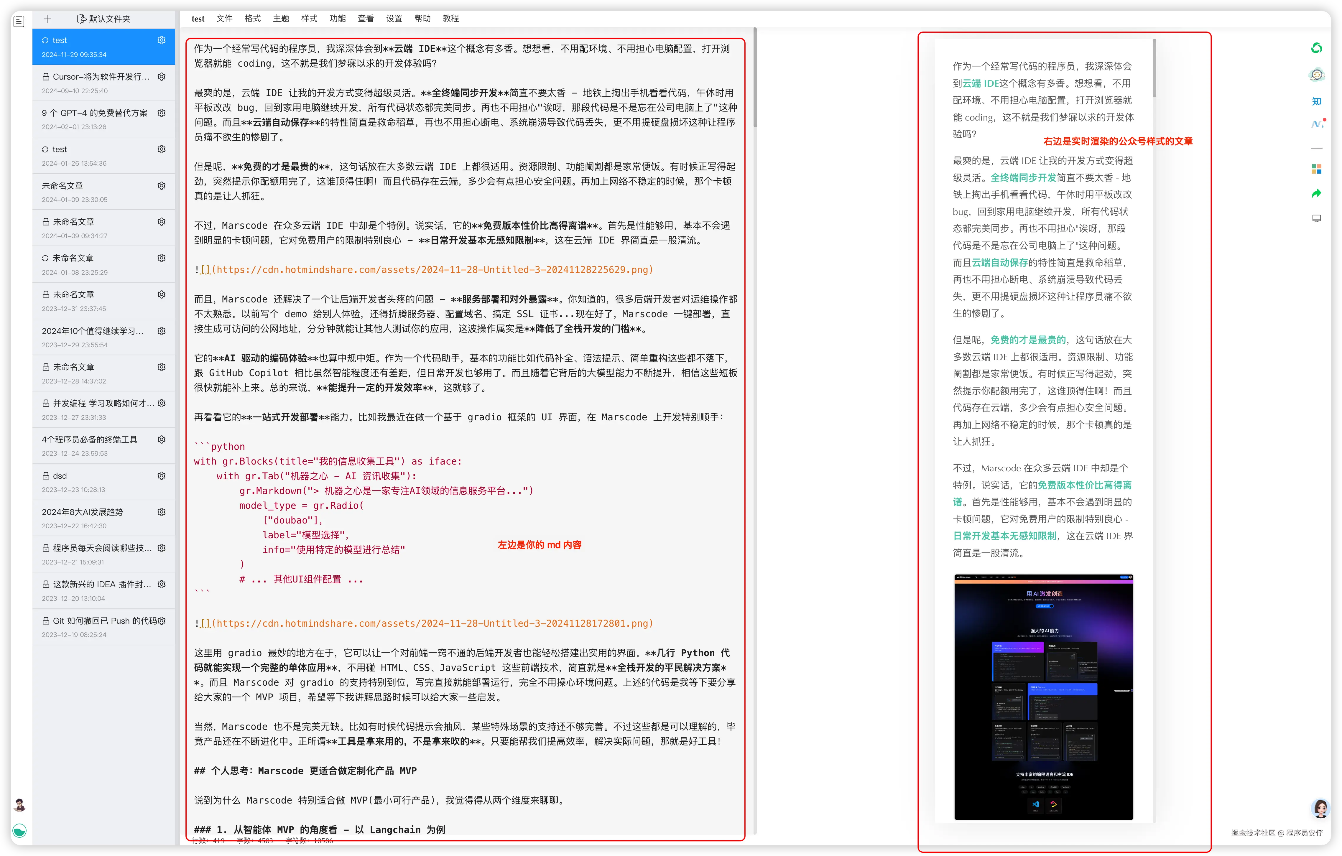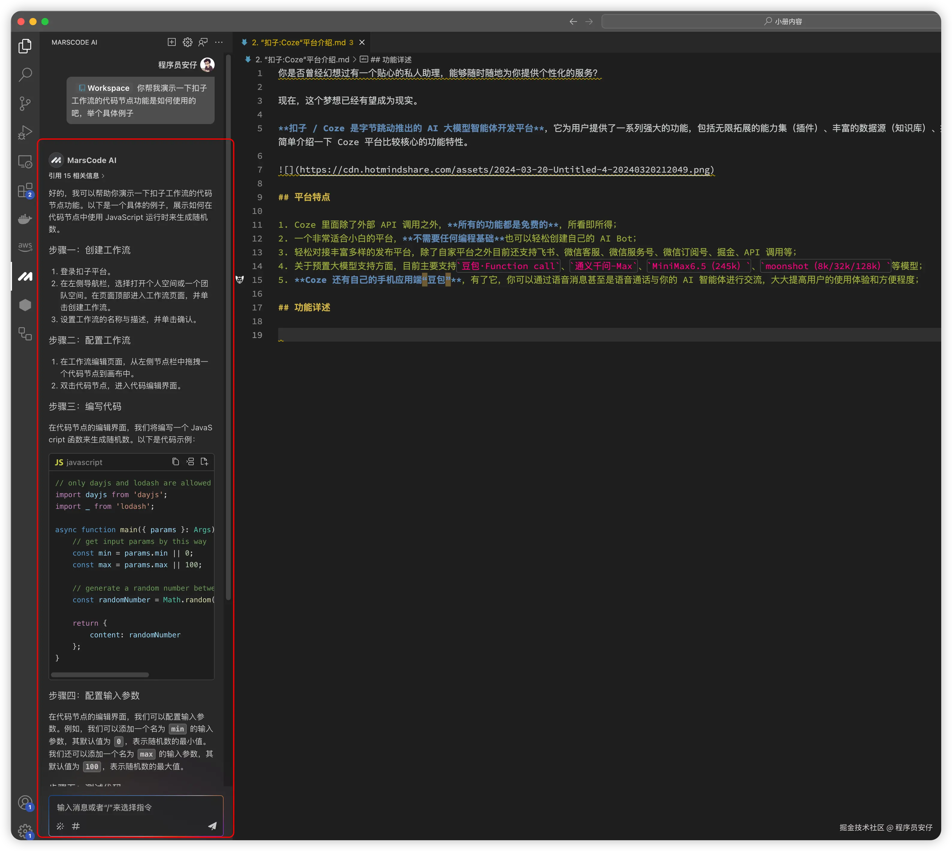 - 在 Marscode 中完成初稿写作后,直接将内容复制到 mdnice 中进行排版预览和调整,这种无缝衔接的体验就挺棒的。