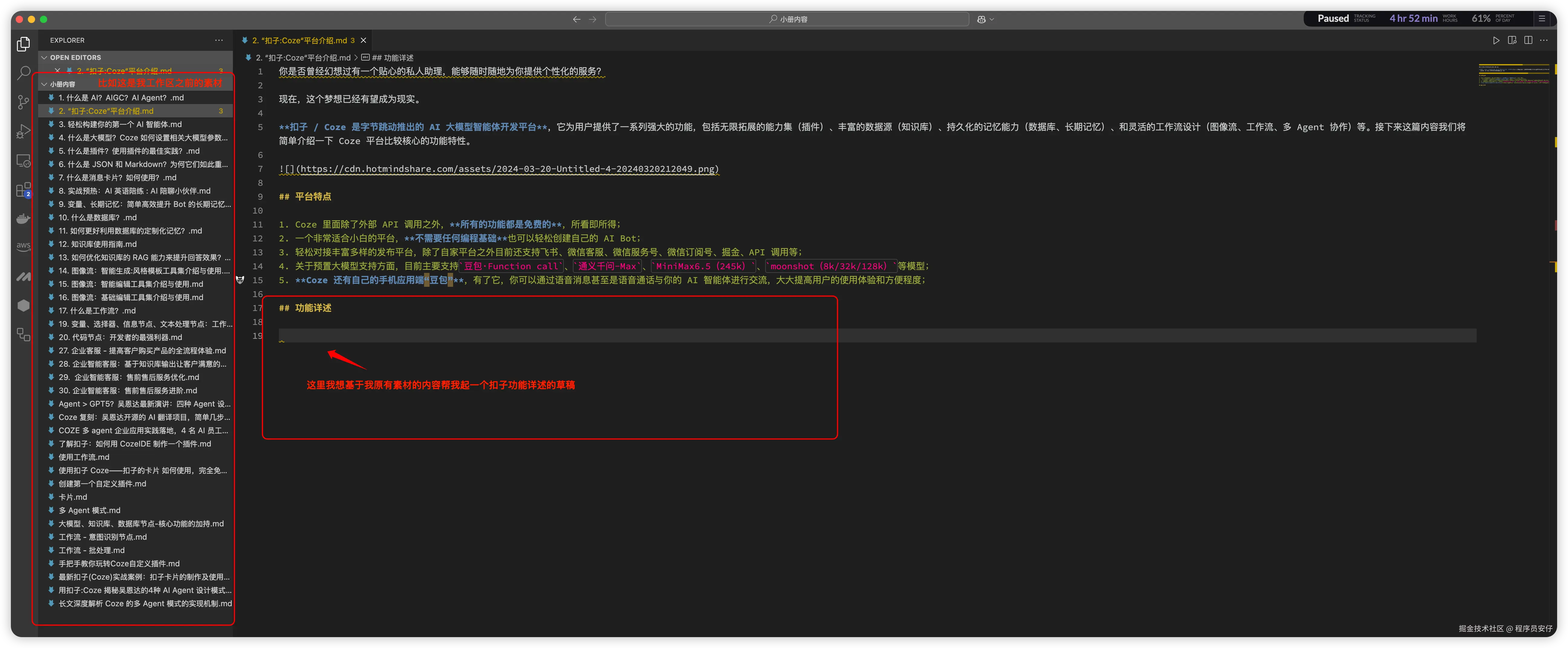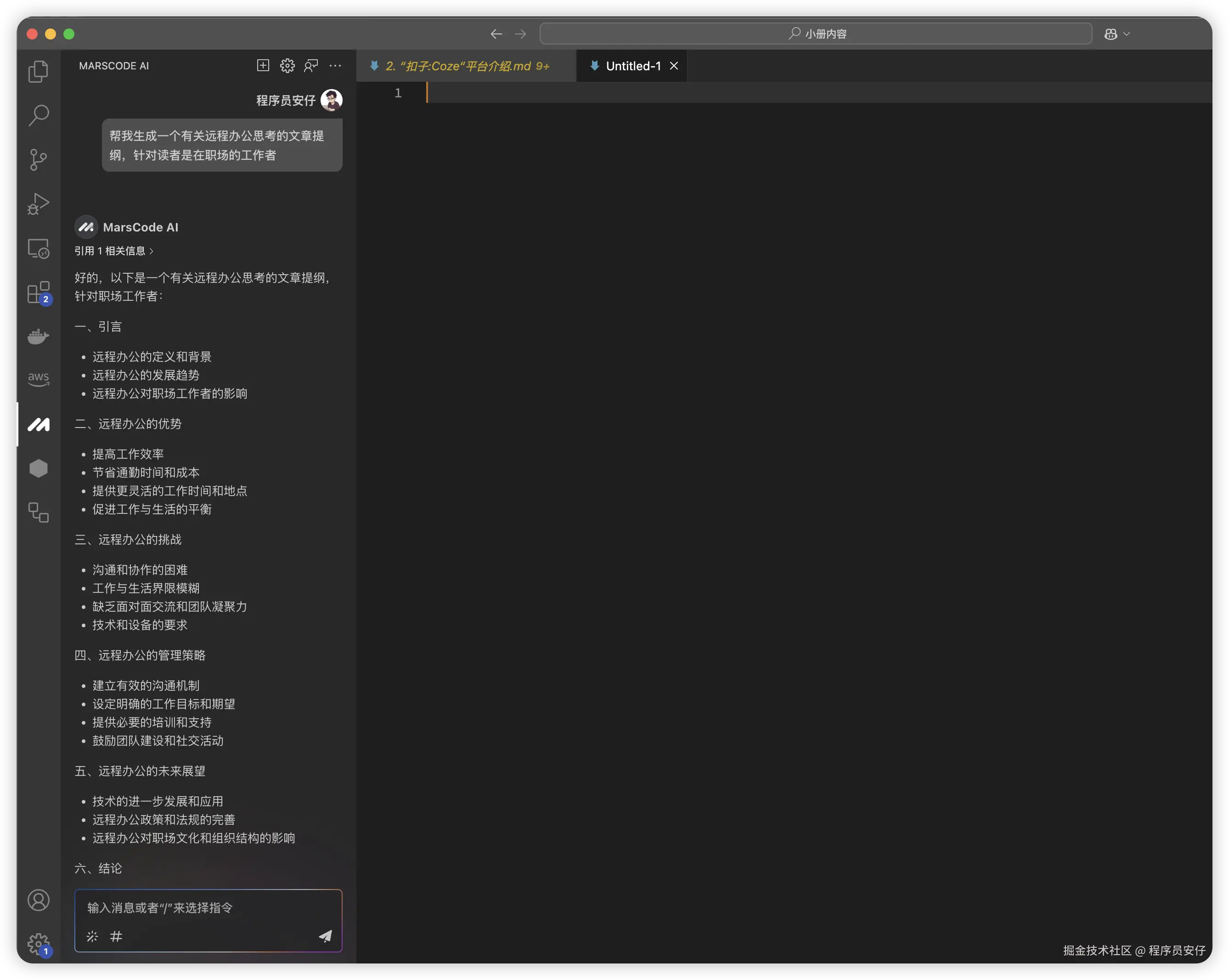 你可能会问:啊?IDE不是写代码用的吗?。没错,我发现 Marscode 这类相似的 AI IDE 简直是写作的完美助手,它不仅能帮你生成内容,还能解决排版、图片上传等各种让人头疼的问题。