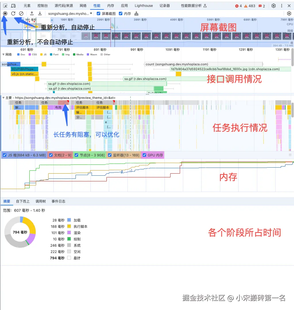 图2-1 是performance面板介绍,展示了performance主要模块的作用。