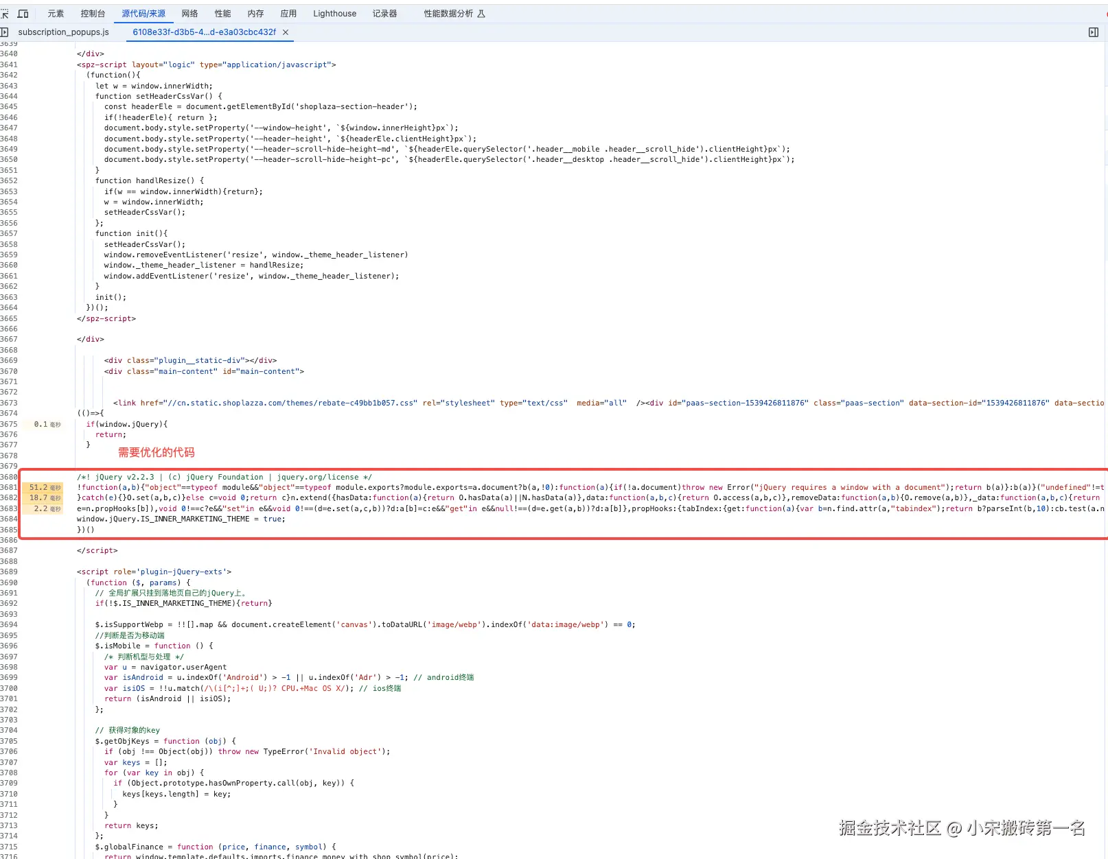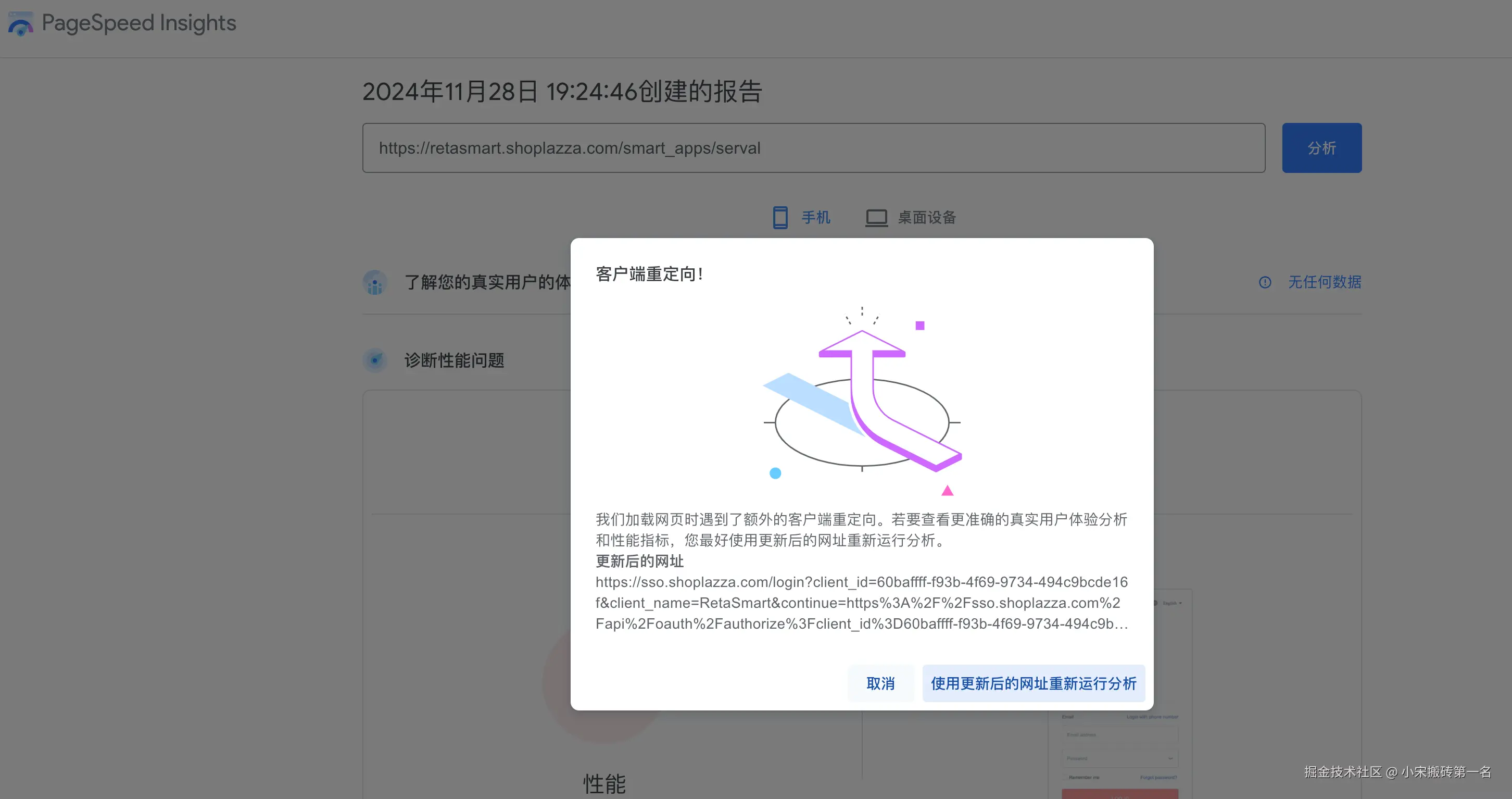 对于需要登陆才能访问的网址不友好,无法查看性能指标(图)(如shoplazza b端retasmart.shoplazza.com/smart_apps/…