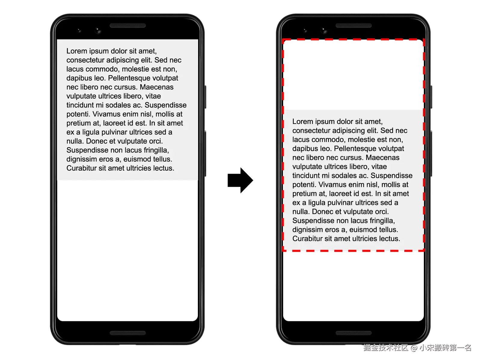 影响百分比=该帧和上一帧中所有不稳定元素的可见区域的组合 / 视口总面积=红色区域高度 / 手机屏幕高度