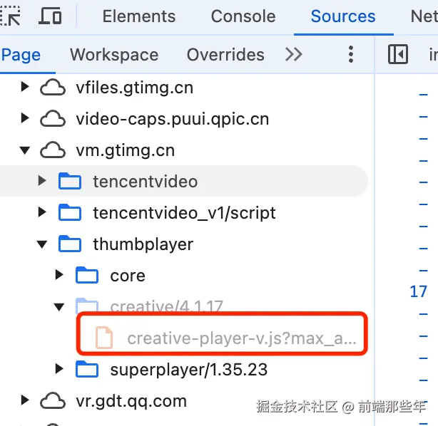 点开thumbplayer这个文件夹,你会发现里面有个creative-player-v.js,没错,这就是我们要找的那个播放器组件。