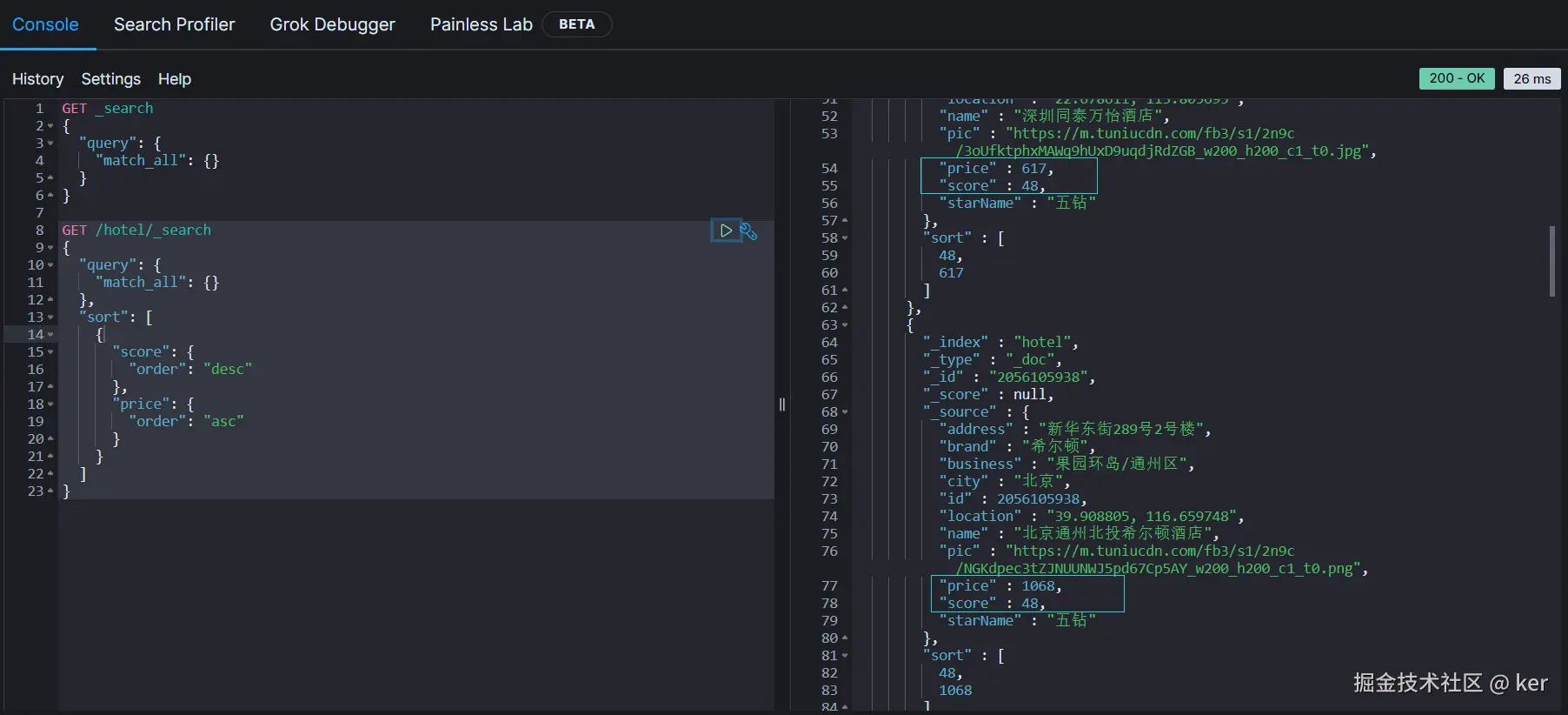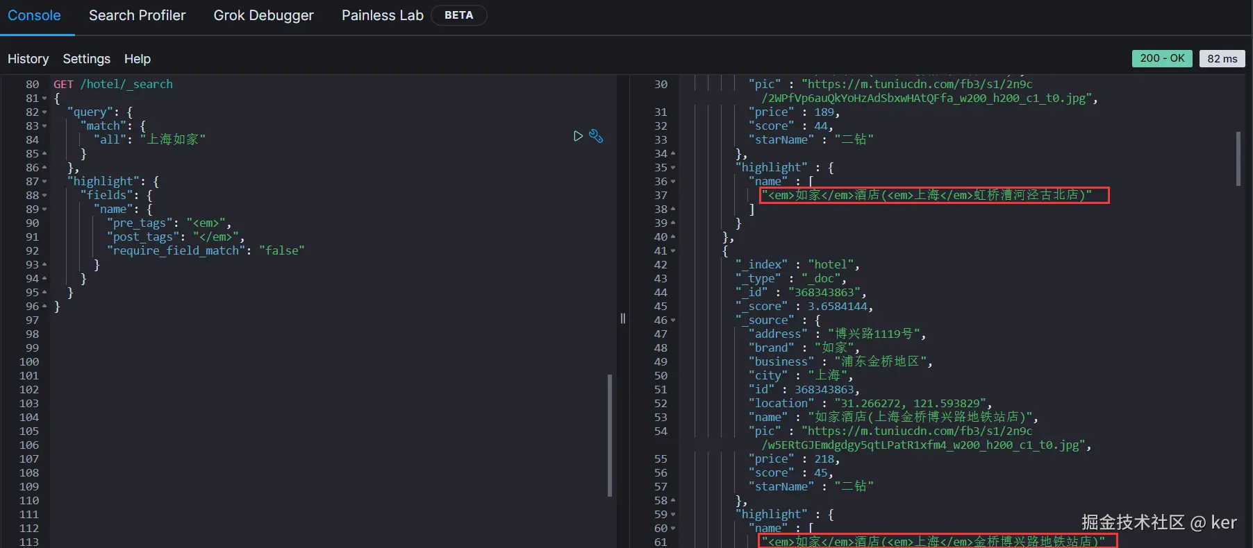 - 返回结果:查询结果以 JSON 格式返回给用户,包括匹配的文档和相关字段信息。