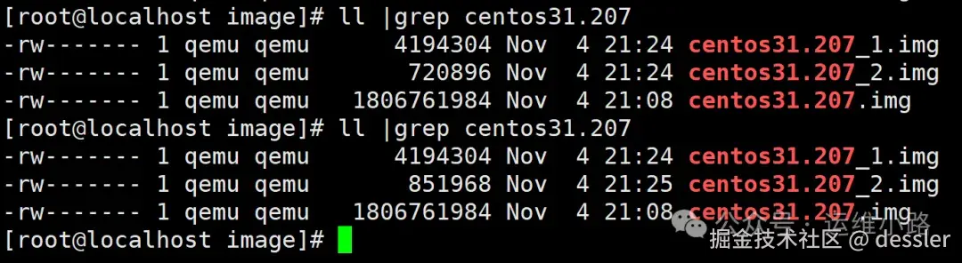 和前面的写时复制对比 早些的31.207.img和31.201_1.img可以理解成底层的文件,是只读的,最新的文件31.207_2.img 则是可读可写的。