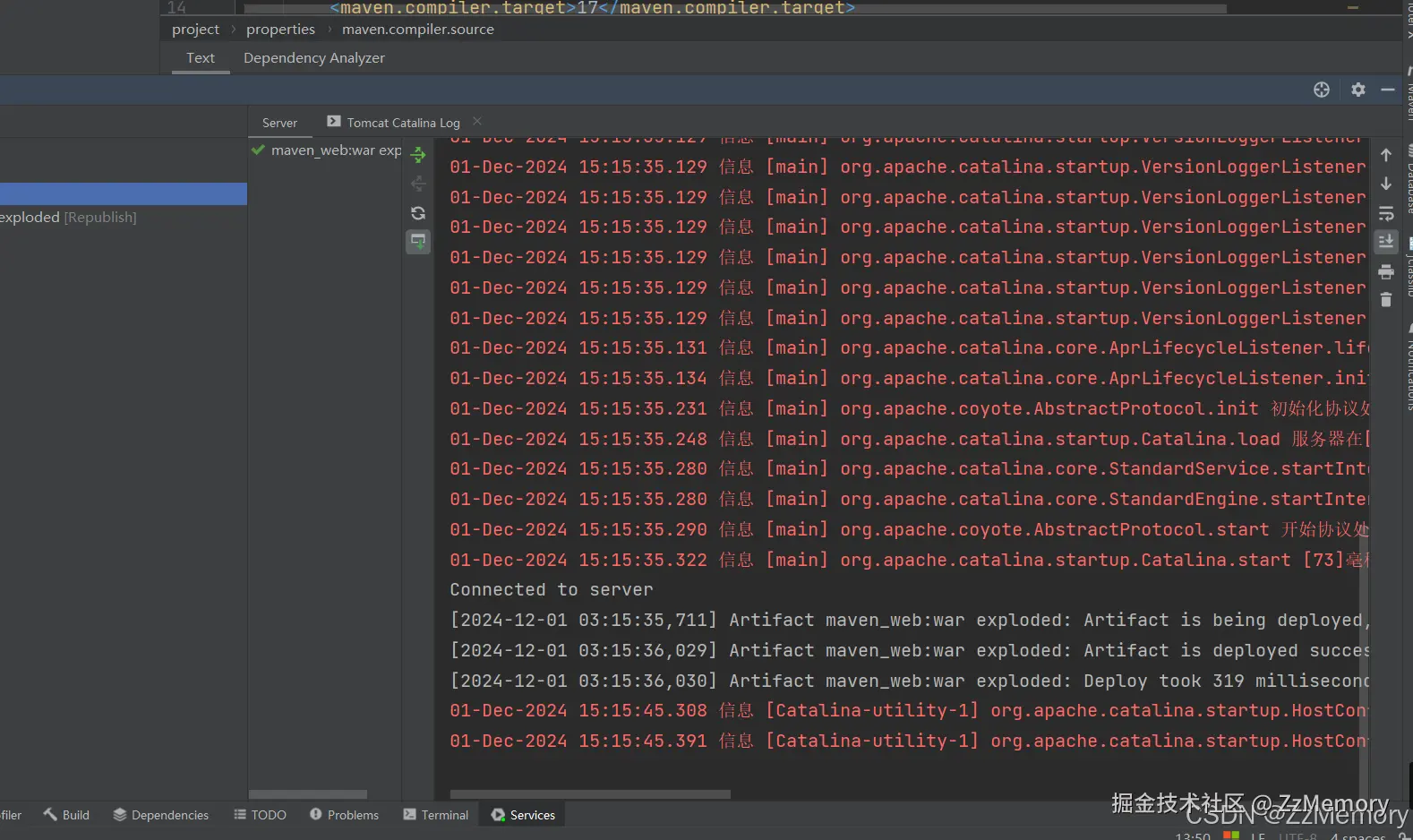 配置maven工程时,我发现了这个情况和单纯的web项目部署到Tomcat上又有不同,需要多考虑Maven这个变量,如果只配置了Tomcat,就可能会出现Server控制台中文乱码,但是Tomcat Catalina Log控制台正常。