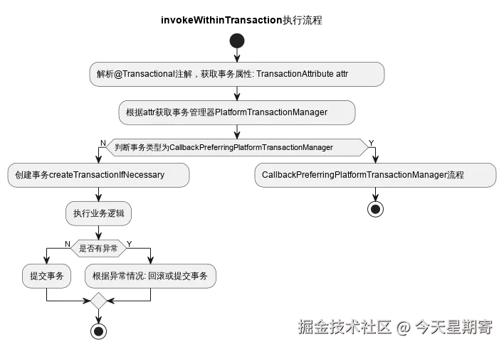 invokeWithinTransaction方法的代码就不放了,其大致流程如下:
