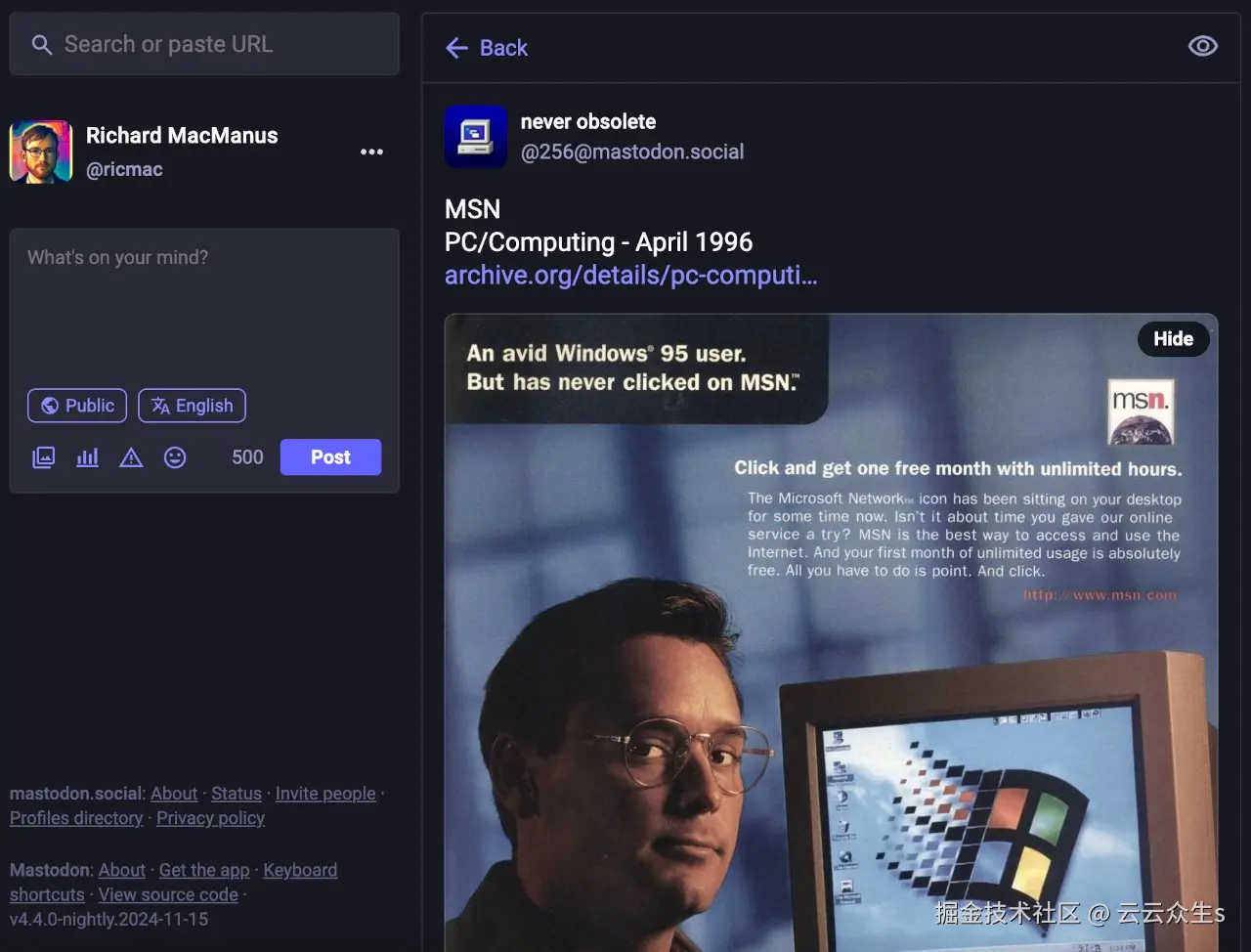 这并非对Mastodon软件的谴责,但这是一个残酷的现实,许多运行Mastodon实例的人都在亏损——因此这些服务器比Threads(Meta所有)或Bluesky这样的风投公司资助的平台更容易关闭。