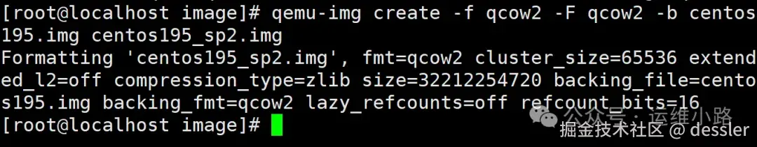 -F qcow2: 指定基础镜像文件 centos195.img 的格式为 qcow2。