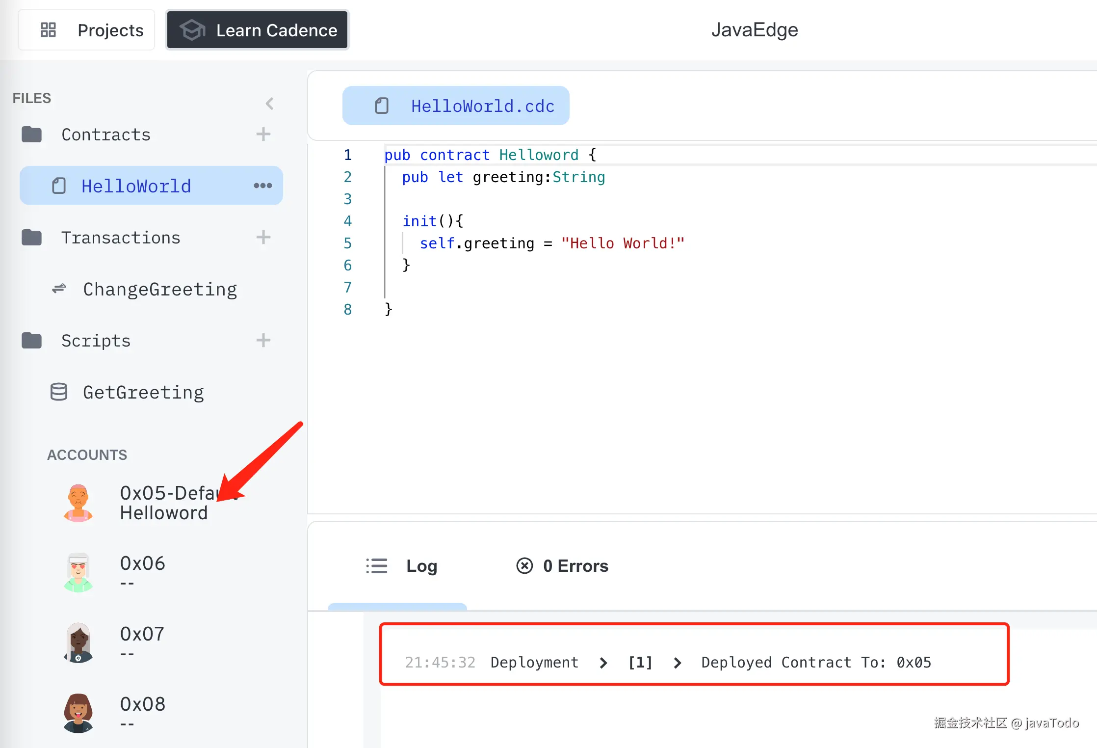 显示合约名称,说明部署成功了:
