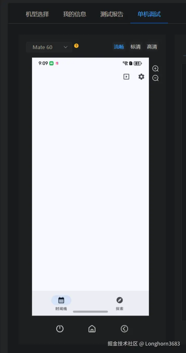 一开始打算用官方的模拟器调试,但鸿蒙的Flutter只支持arm64,而我没有arm64的电脑,也没有能升级Next的设备,所以申请了云调试的Next机型