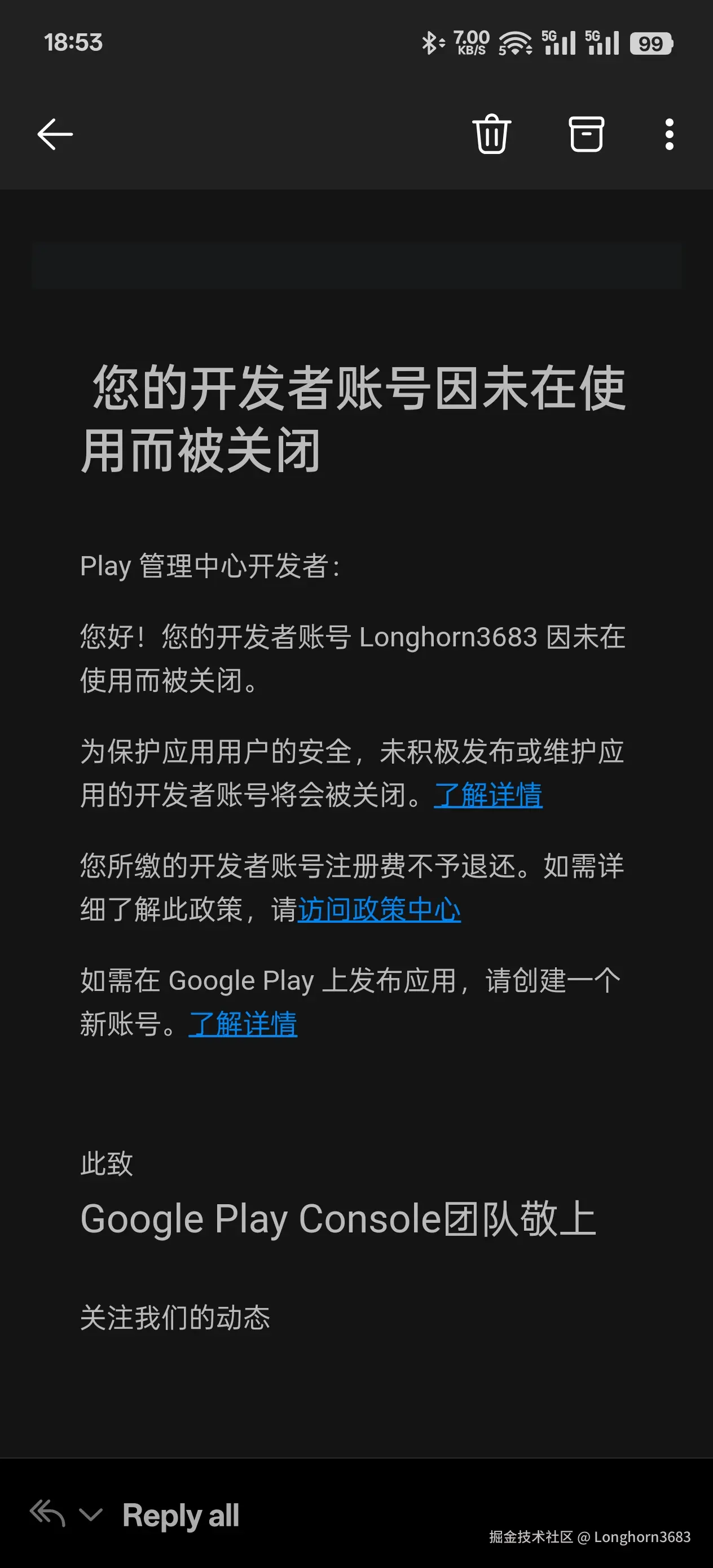 而Play商店因为应用太久没更新,账号被关闭了,直接痛失200多块钱[表情]