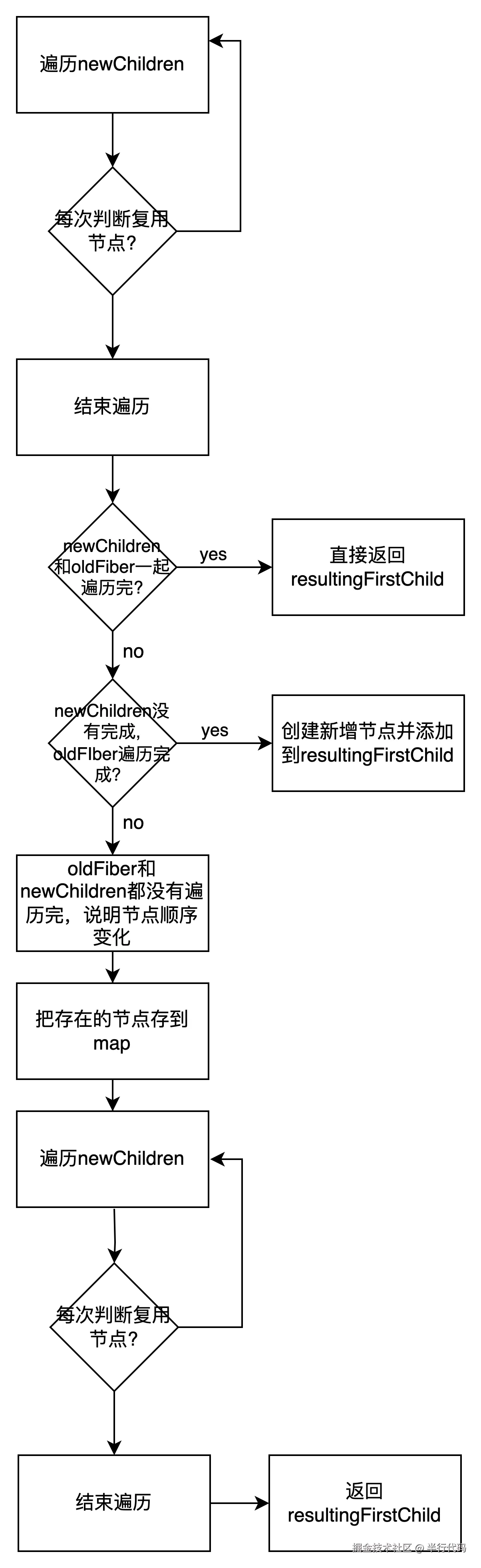 这里能看到大概的节点复用/创建流程: