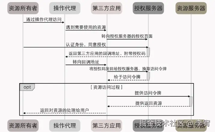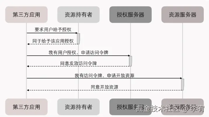- **多方系统中的授权:**涉及第三方系统时,授权过程更加复杂,需要解决如何既让第三方访问资源又保护用户敏感数据的问题。