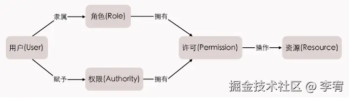 - **核心问题:**谁(User)拥有什么权限(Authority)去操作(Operation)哪些资源(Resource)