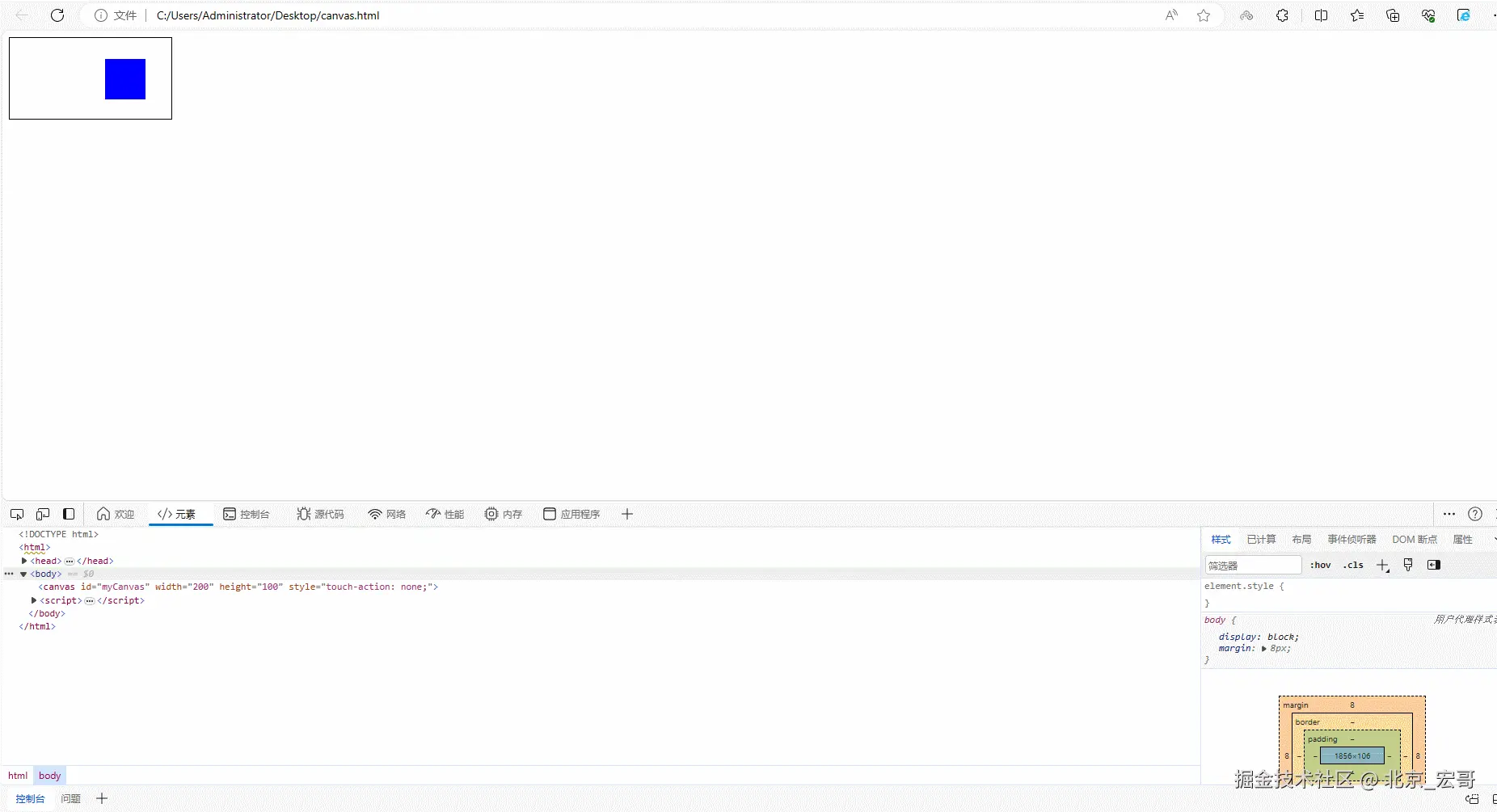 4.通过上边我们知道定位到Canvas元素,然后再操作是无法实现拖拽的。那么宏哥就想能不能不定位Canvas元素,而是通过鼠标事件直接操作从而实现拖拽操作呢?按这个思路没有想到果然实现了。
