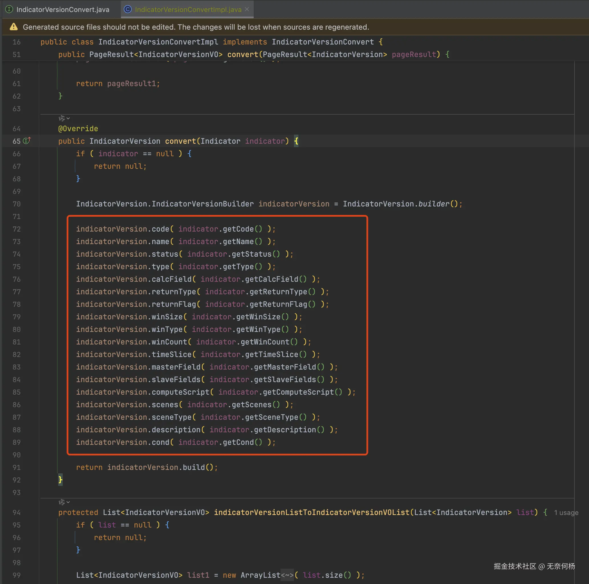 还有一种方式就是,对了忘了讲了我使用的MapStruct做的实体类的转换,所以像这个例子,可以标记一下忽略转换的字段,如下。