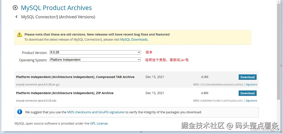 MySQL驱动下载地址:dev.mysql.com/downloads/c…