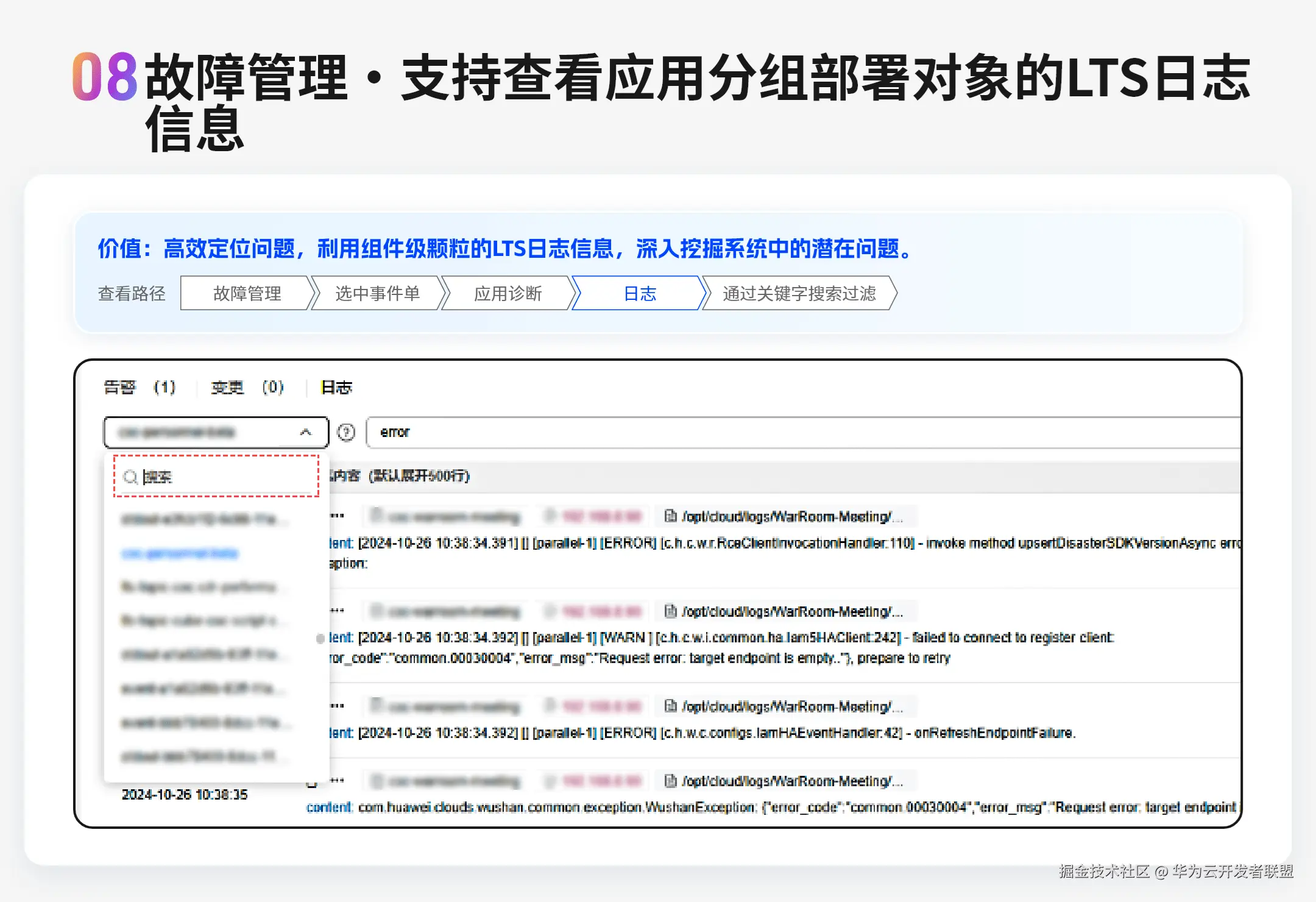 - 故障管理:支持查看应用分组部署对象的LTS日志信息