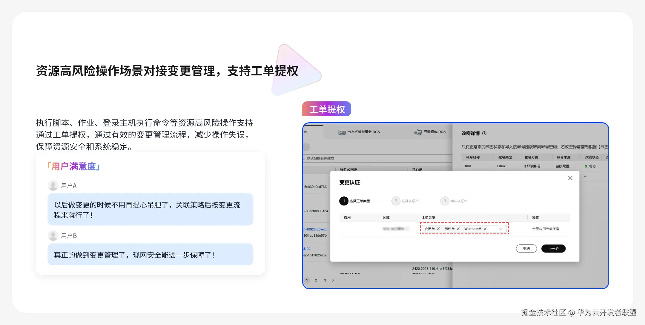- 支持资源高风险操作场景通过工单提权