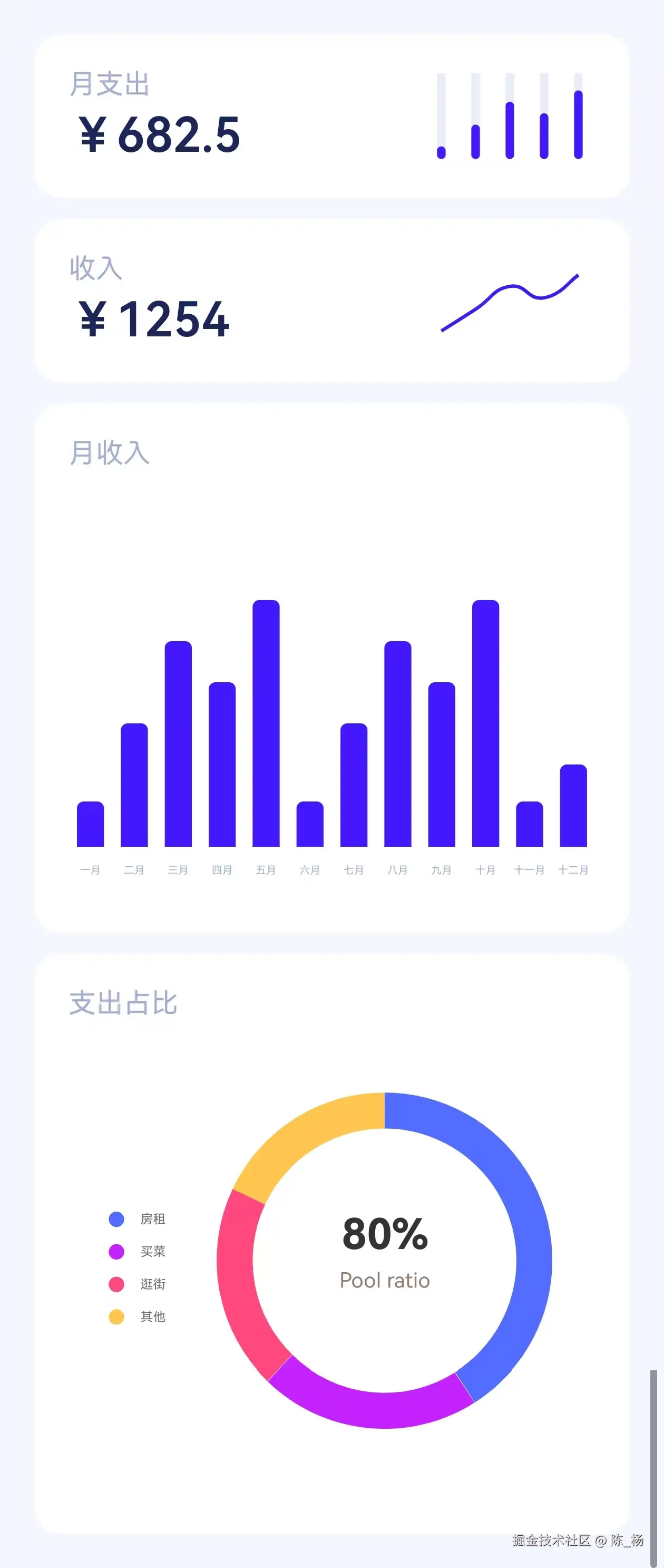 - 还可以通过仪表盘来展示对应的比例数据