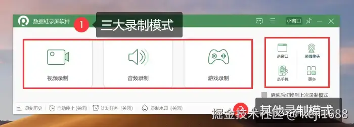 步骤1:打开软件我们可以根据录制需求选择合适的录屏模式。这里,将以常用的 【视频录制】 模式为例。