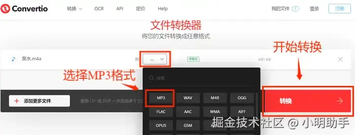 除了使用数据 蛙视频转换器之外,我们还可以不用下载安装软件,通过访问在线转换网站Convertio的方式进行转换,这个网站可以将m4a直接改成mp3免费。使用这种方式进行转换时要保持网络通畅,注意保护自己的隐私和文件安全。下面是这种方法的简要使用步骤: