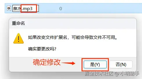 第二步: 将文件后缀名m4a改为mp3(注意要保留【·】符号),在弹出提示框之后点击【是】即可完成修改。