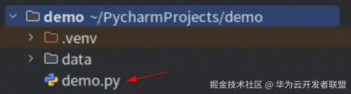 在PyCharm左侧新建的demo目录单击鼠标右键,在打开的菜单中选择“新建>Python文件”。