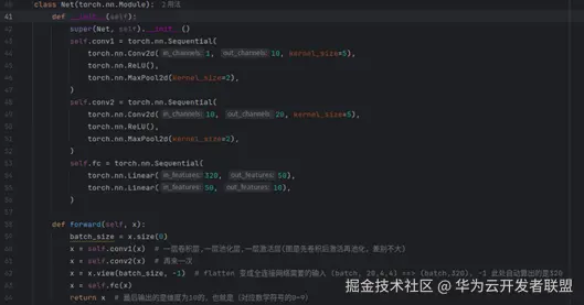 x = x.view(batch_size, -1) # flatten 变成全连接网络需要的输入 (batch, 20,4,4) ==> (batch,320), -1 此处自动算出的是320